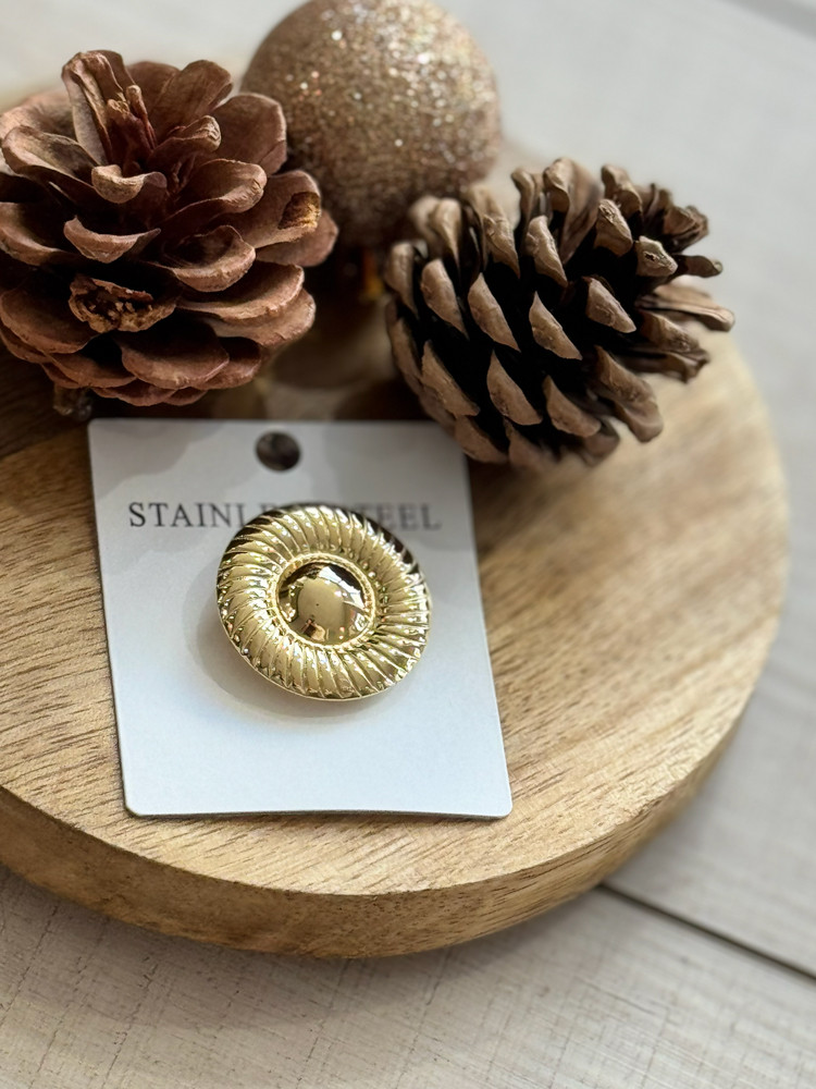 Apportez une touche de raffinement à votre tenue avec cette broche en acier inoxydable doré. Son design délicat s’adapte à toutes les occasions, que ce soit pour sublimer un blazer, un foulard ou un sac.