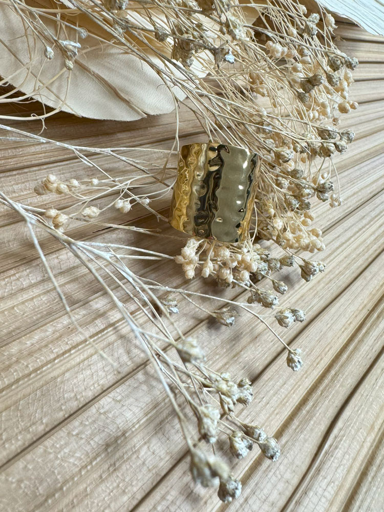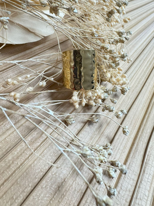 Une idée cadeaux parfaite pour les fêtes, la bague Orly en or martelée s'adaptera à tous les doigts