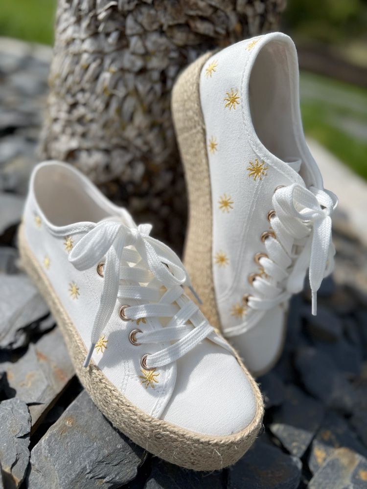 Optez pour ces baskets blanches avec ses soleils brodés dessus. Légère et agréable à porter, elles seront parfaites pour cet été.