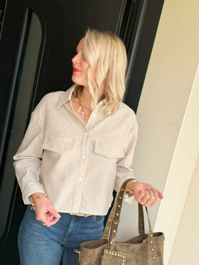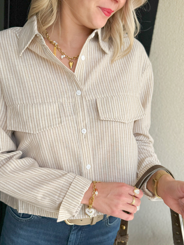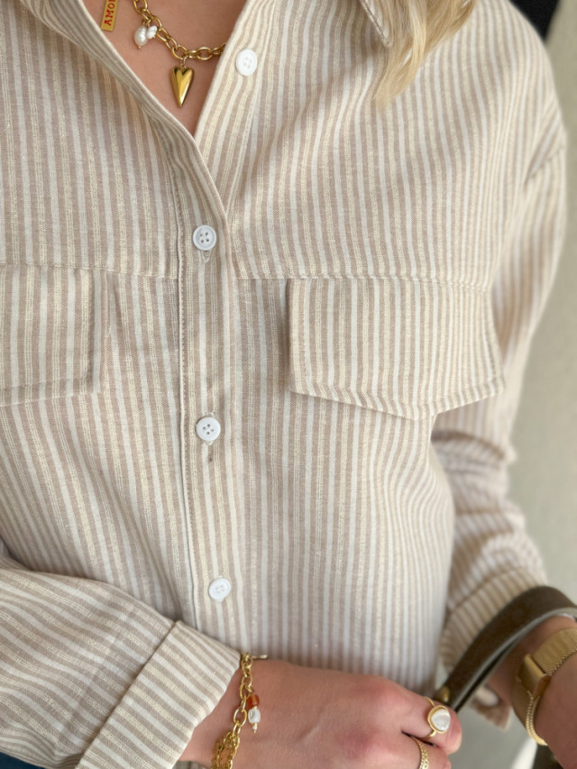 Apportez une touche de modernité et d’élégance à votre garde-robe avec ce chemisier à rayures pour femme.