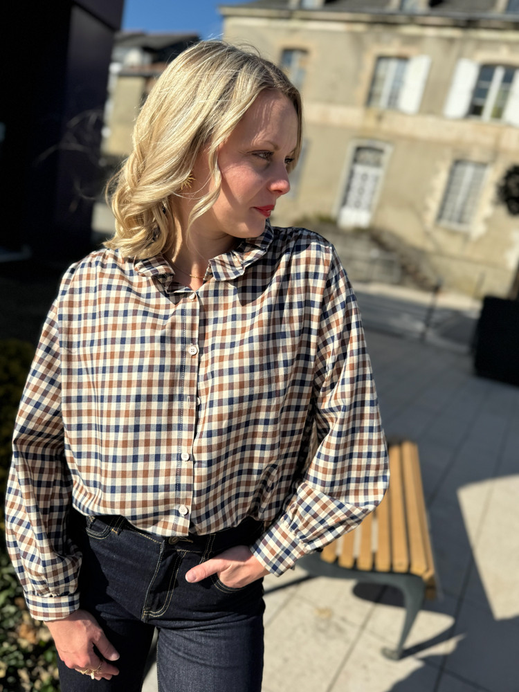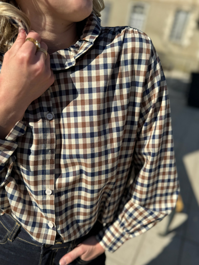 Laissez-vous séduire par le charme rétro de cette blouse à carreaux au style vintage irrésistible. Son col volanté apporte une touche originale à votre tenue