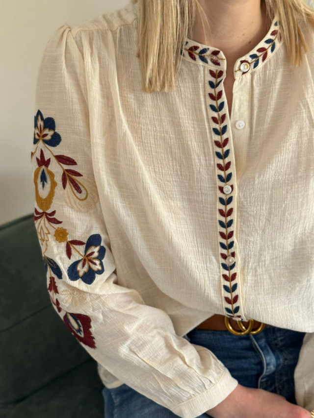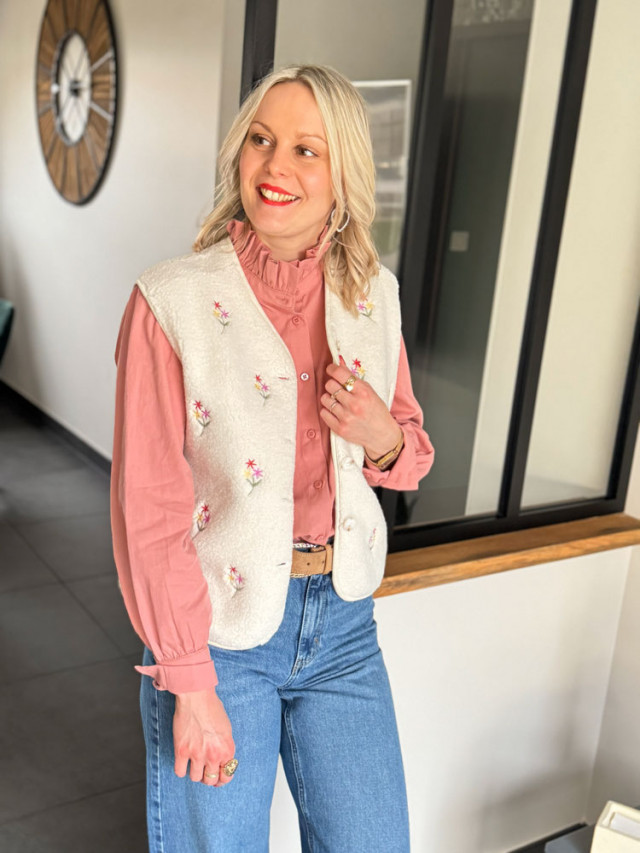 L’alliance parfaite de la douceur et du caractère. Notre blouse rose uni se distingue par son col montant à volants, une finition raffinée qui structure le port de tête avec délicatesse.