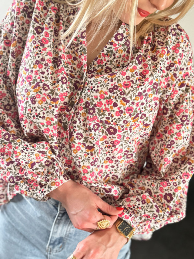 Adoptez une allure moderne et aérienne avec notre blouse oversize aux motifs floraux. Alliant le romantisme des fleurs à une coupe large contemporaine, cette pièce est l'équilibre parfait entre confort absolu et élégance sophistiquée.