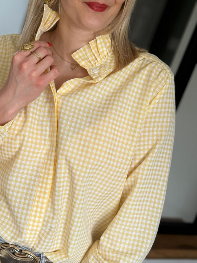 Le charme du vintage, la fraîcheur du jaune. Succombez au style iconique des années 60 avec notre blouse en vichy jaune. Ce motif à petits carreaux, symbole d'élégance décontractée