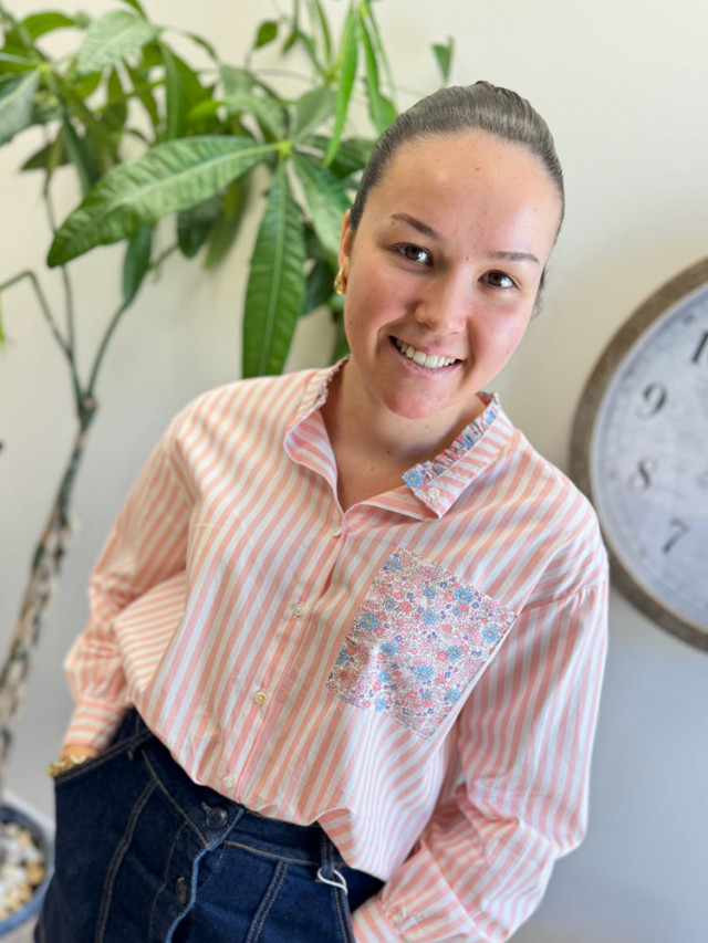 Osez l'originalité avec cette chemise rayée unique en son genre. Jouant sur un contraste de couleurs dynamiques, elle se distingue par ses touches de tissu fleuri délicatement apposées sur la poche poitrine et l'intérieur du col.