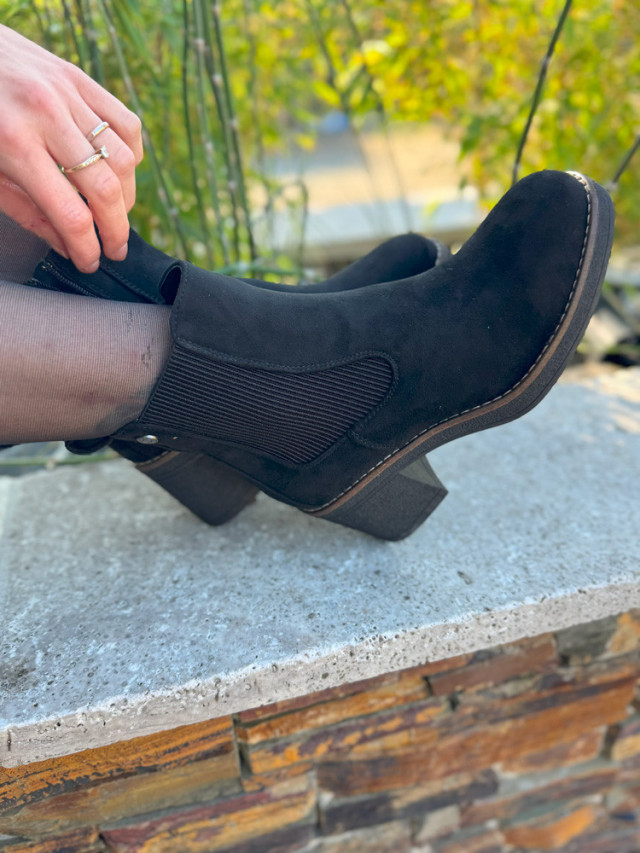 Indispensables du dressing, ces bottines en suédine noire allient chic et élégance.