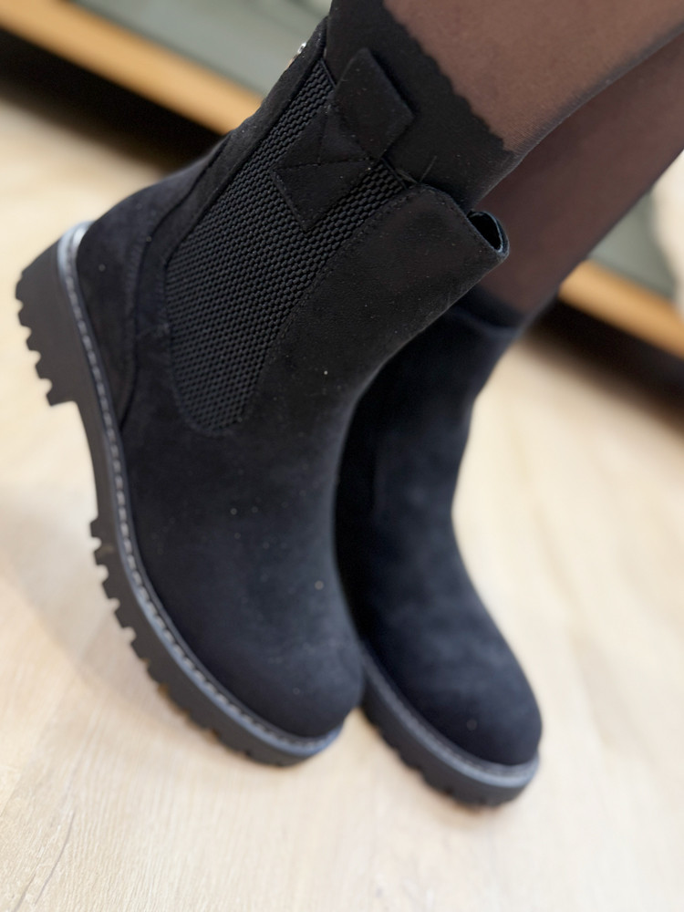 Découvrez ces bottines noires en suédine signées Refresh, alliant élégance et confort au quotidien.