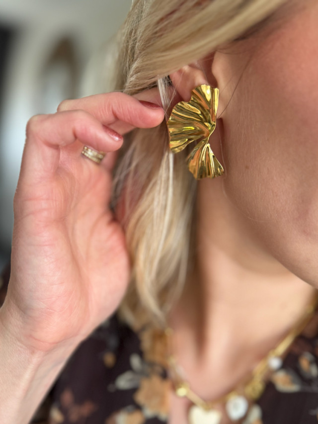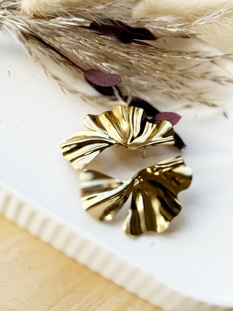 Apportez une touche délicate et féminine à vos tenues avec ces boucles d’oreilles en or en forme de demi-fleur.