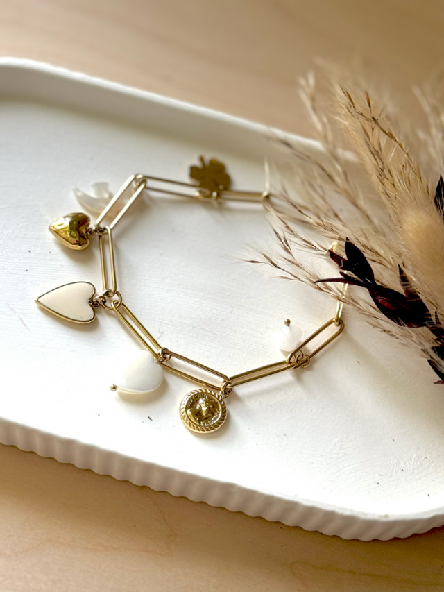 Ajoutez une touche d’originalité et de raffinement à votre style avec ce bracelet chaîne orné de multiples pendentifs.