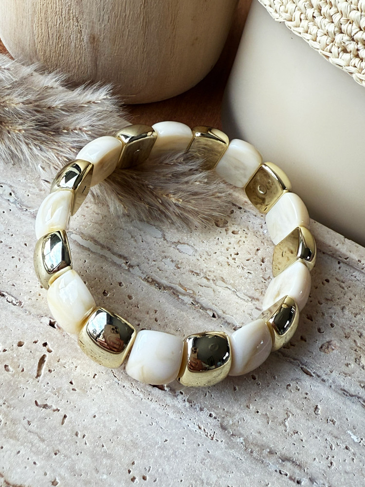 Ajoutez une note de couleur et d’élégance à votre poignet avec ce bracelet élastique composé de perles colorées et dorées.