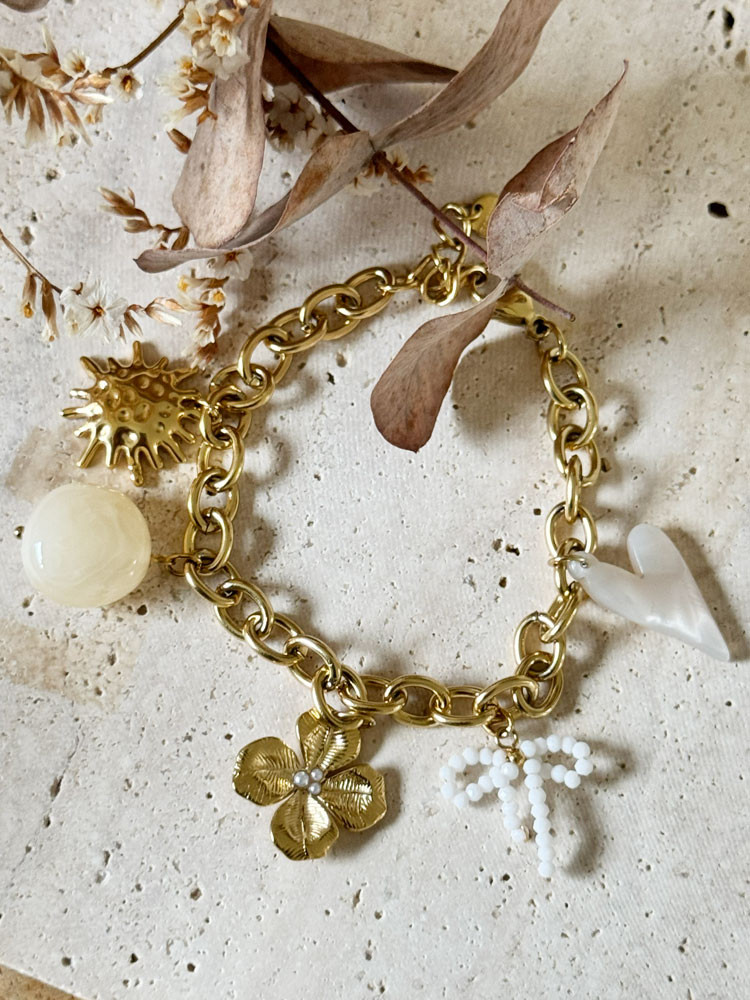 Apportez une touche de charme et de féminité à votre poignet avec ce magnifique bracelet à breloques. Orné de diverses perles et breloques variées, c'est le bijou idéal pour sublimer vos tenues.