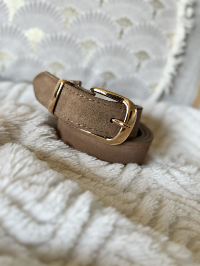 Apportez une touche raffinée à vos tenues avec cette ceinture en daim au design chic et intemporel. Sa boucle dorée élégante ajoute une note sophistiquée et lumineuse, parfaite pour sublimer vos looks casual ou habillés.