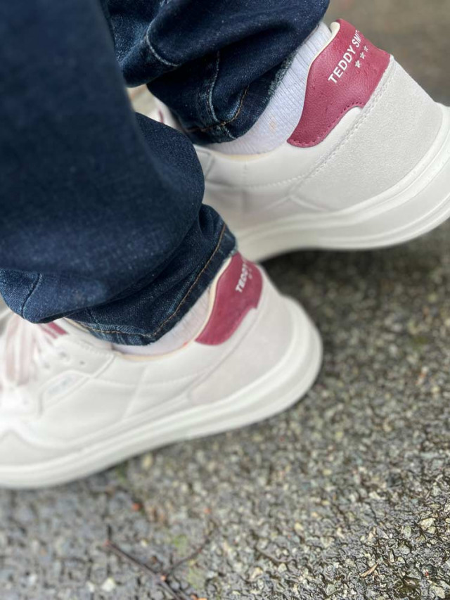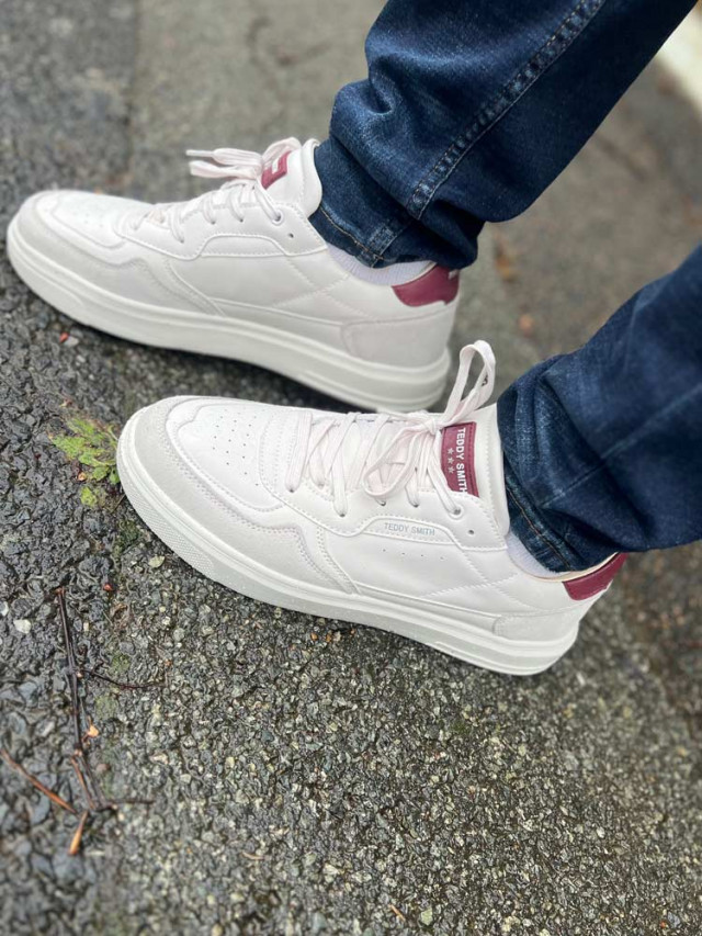 Confort et tendance, optez pour ces baskets blanches et sa touche de bordeaux Edel qui apporteront du peps à votre tenue automnale
