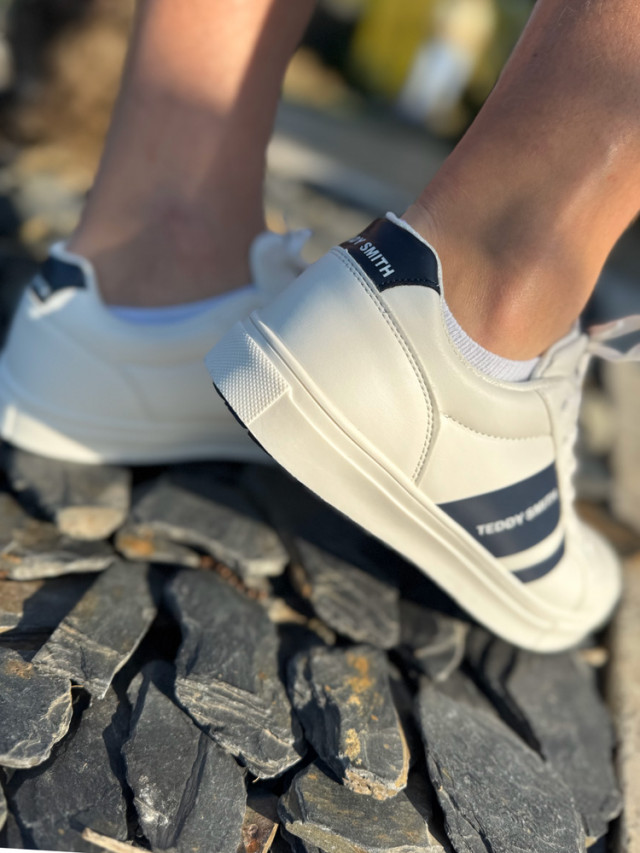 Alliez confort et élégance avec ces baskets incontournables blanches et marine de la marque Teddy Smith