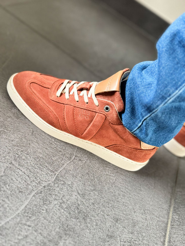 Rehaussez votre style avec ces superbes baskets basses au coloris rouge terracotta profond et chaleureux. Alliant avec brio le cuir lisse et la suédine douce, ces sneakers offrent un contraste de textures élégant pour un look casual-chic indémodable.