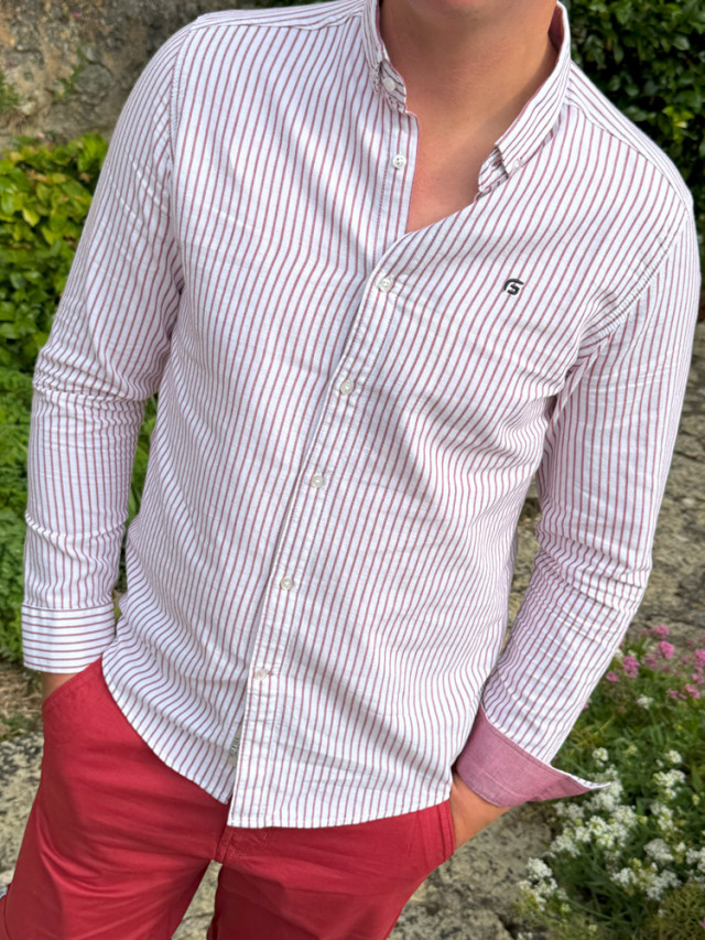 Adoptez une touche de style avec cette chemise rayée rose aillant élégance et confort.