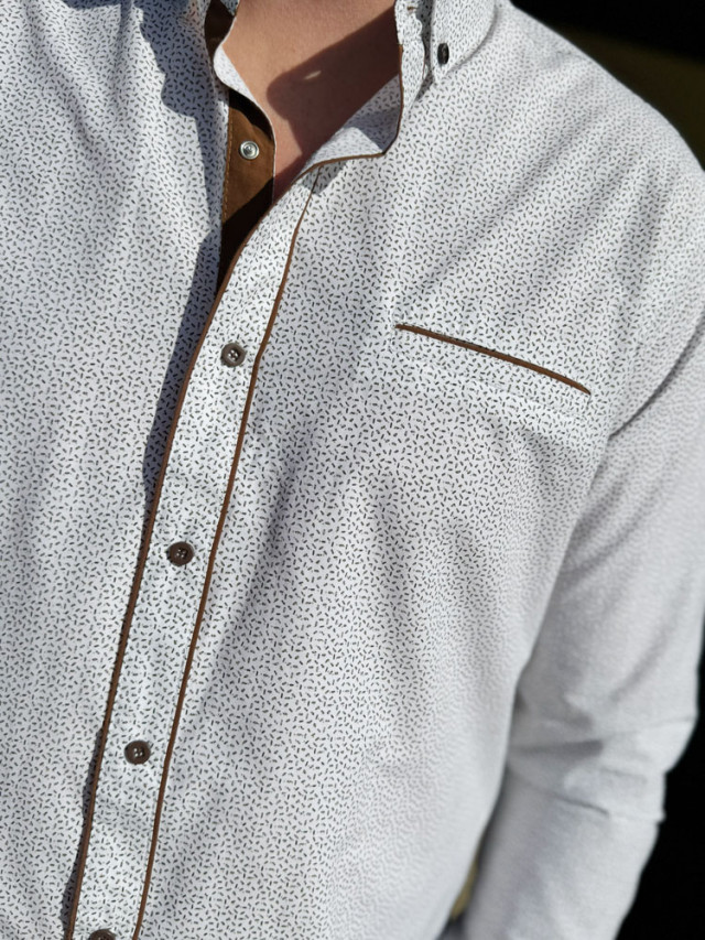 Optez pour cette chemise élégante et raffinée. Un mélange de genre entre le blanc de la chemise et ses motifs abstrait vert marron.