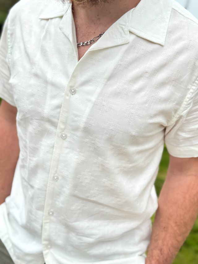 Optez pour la décontraction simple avec cette chemisette écru signée Deeluxe. Son motif ton sur ton et sa coupe droite apporte légèreté à votre look.