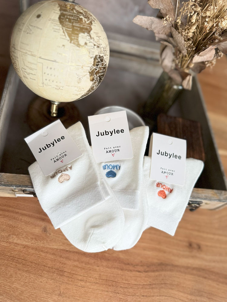 Ajoutez une touche de douceur à vos pieds avec nos chaussettes blanches Amour