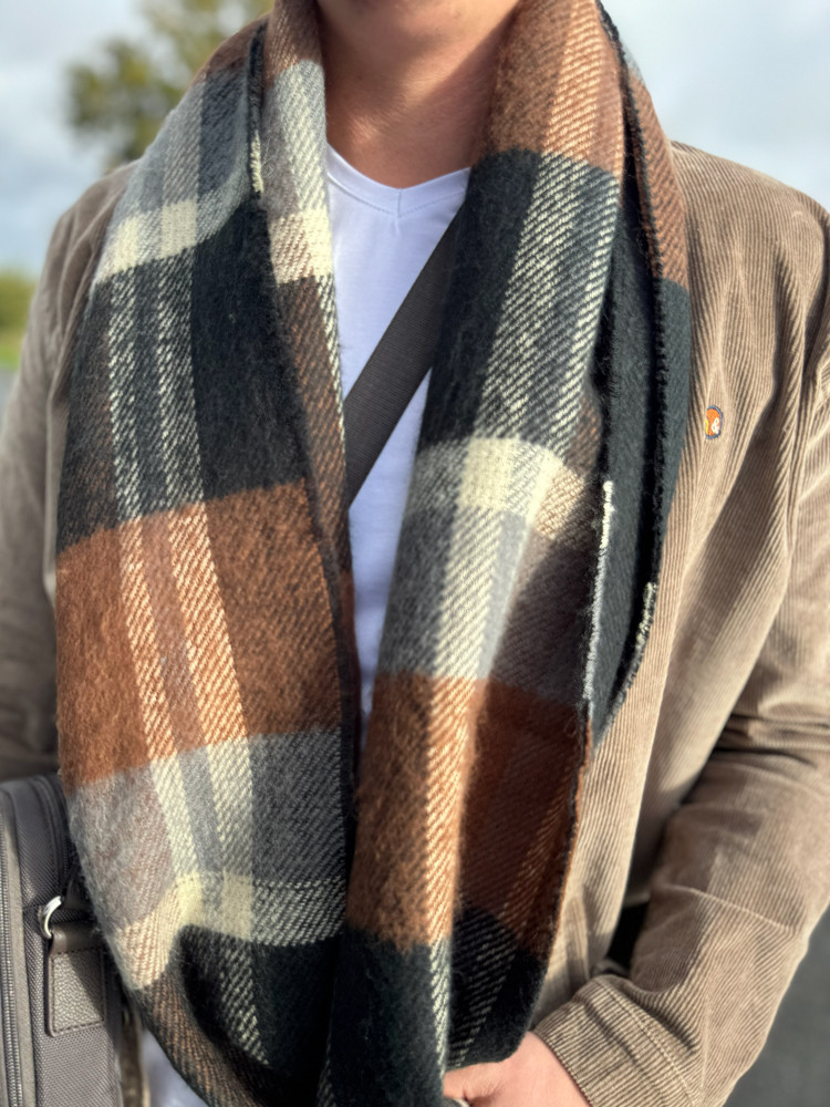 Apportez une touche de sophistication à vos tenues avec cette écharpe à carreaux pour homme. Aux tons marron et noir élégants, elle s’accorde facilement avec vos manteaux, vestes et pulls pour un look moderne et raffiné.