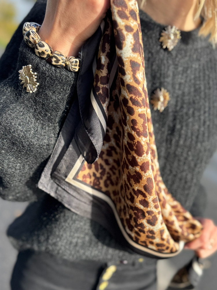 Sublimez vos tenues avec ce magnifique carré de soie, un accessoire intemporel qui allie finesse et sophistication. Porté autour du cou, dans les cheveux ou noué à un sac, il apporte instantanément une touche chic et féminine à votre look.