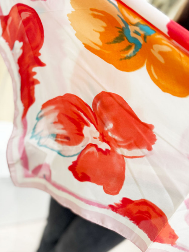 Apportez une explosion de couleurs et une touche de luxe à votre garde-robe avec notre foulard carré en soie. Véritable pièce de collection, ce carré de soie se distingue par ses imprimés audacieux et ses teintes éclatantes