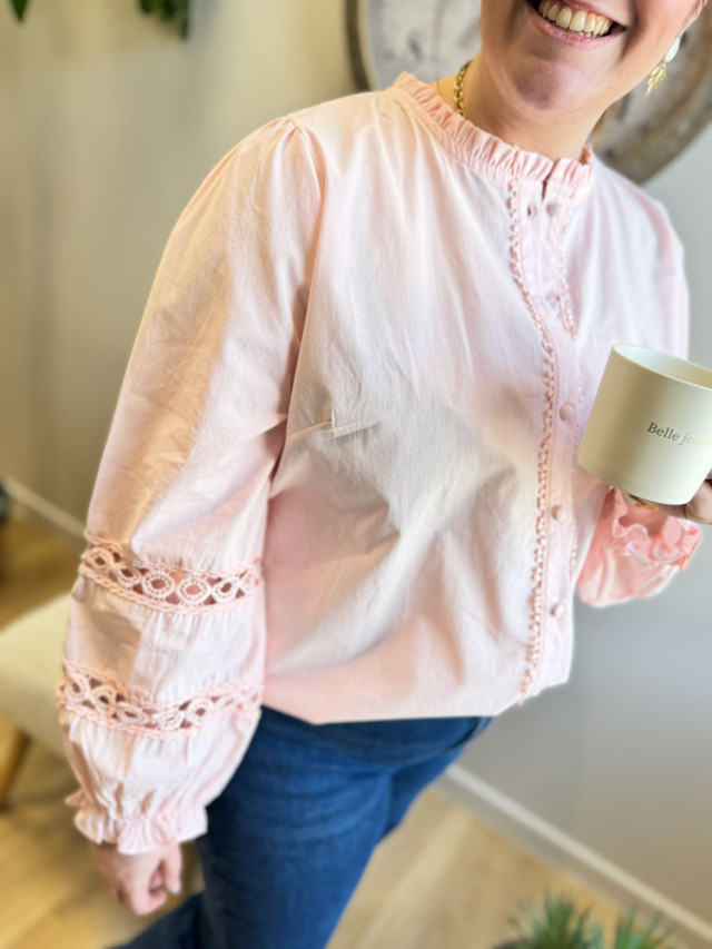 Apportez une dose de féminité et de transparence avec notre blouse oversize et sa broderie anglaise ajourée.
