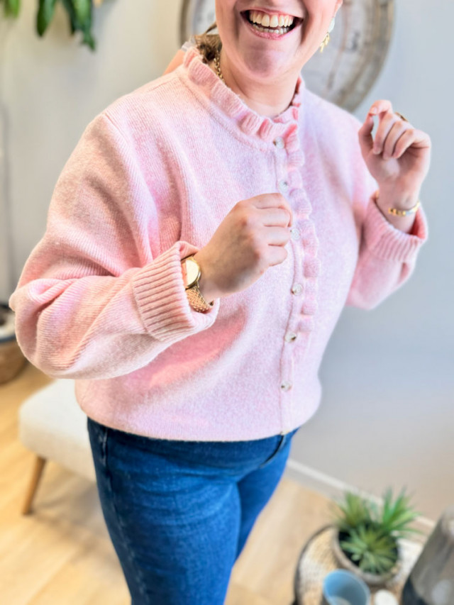 Laissez entrer la lumière dans votre dressing avec notre gilet rose pastel. Sa teinte tendre et lumineuse évoque la douceur printanière, tandis que son col à volants apporte cette note vintage