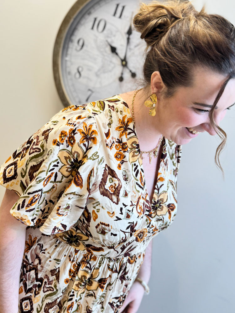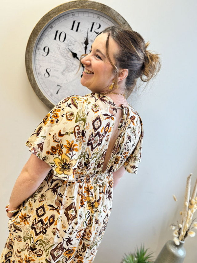 Le charme bohème aux couleurs de la nature. Plongez dans un univers poétique avec notre robe longue aux motifs floraux.