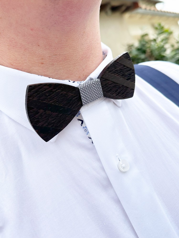 Style authentique et audacieux optez pour ce nœud papillon en bois et son design graphique. Sa touche de couleur en tissu au centre permet de moderniser le tout.