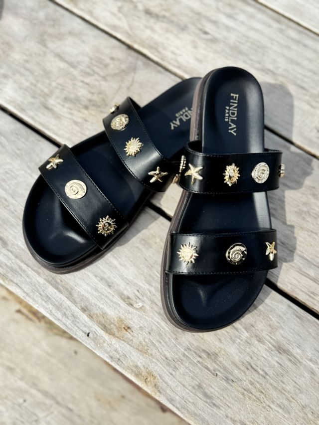 Glissez vos pieds dans l'été avec nos sandales claquette ornée de breloques coquillages. Simples et audacieuses, nos sandales sont disponibles en plusieurs coloris.