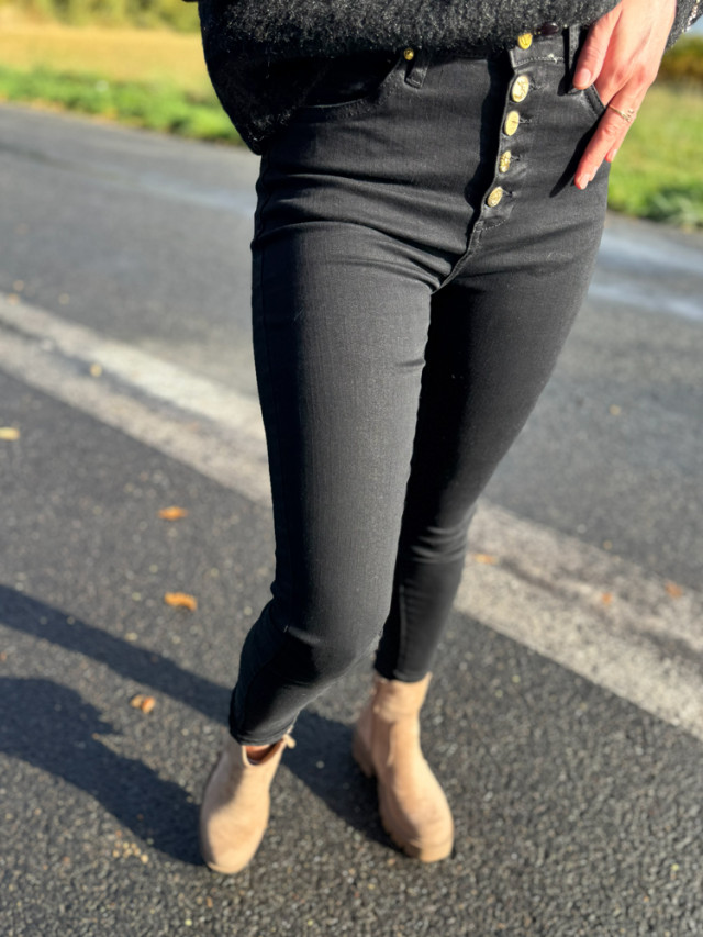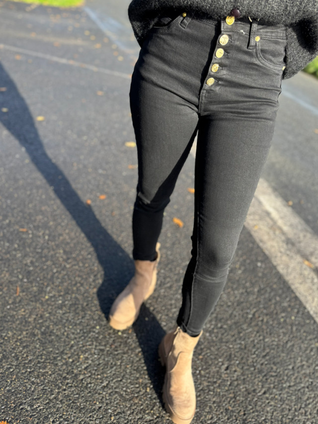 Un classique, ce jeans slim restera un intemporel de votre garde robe. Ajoutez une touche moderne avec son détail de boutons chic et élégants, qui sublimera votre silhouette.