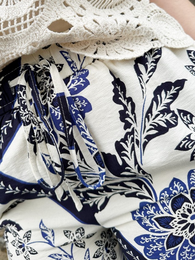 Laissez vous séduire par la légèreté de notre pantalon fluide à imprimé graphique. Ses motifs style floral marine apportent fantaisie à votre tenue.