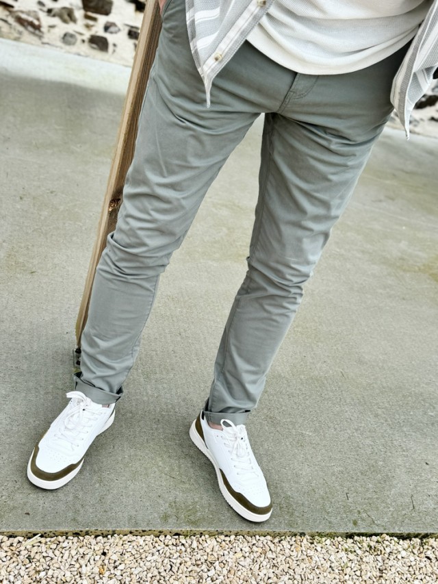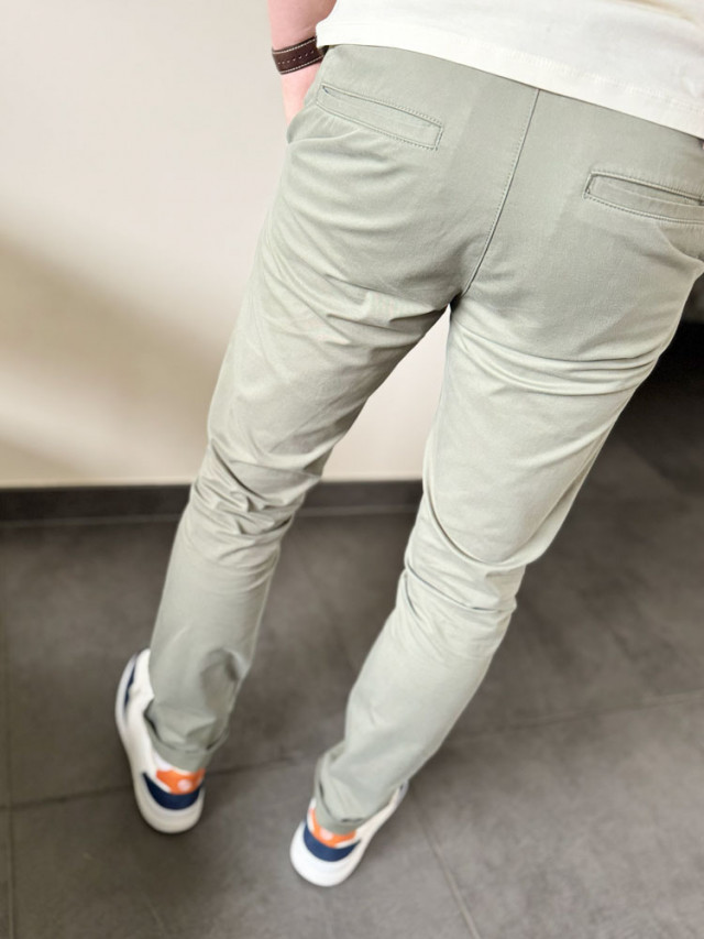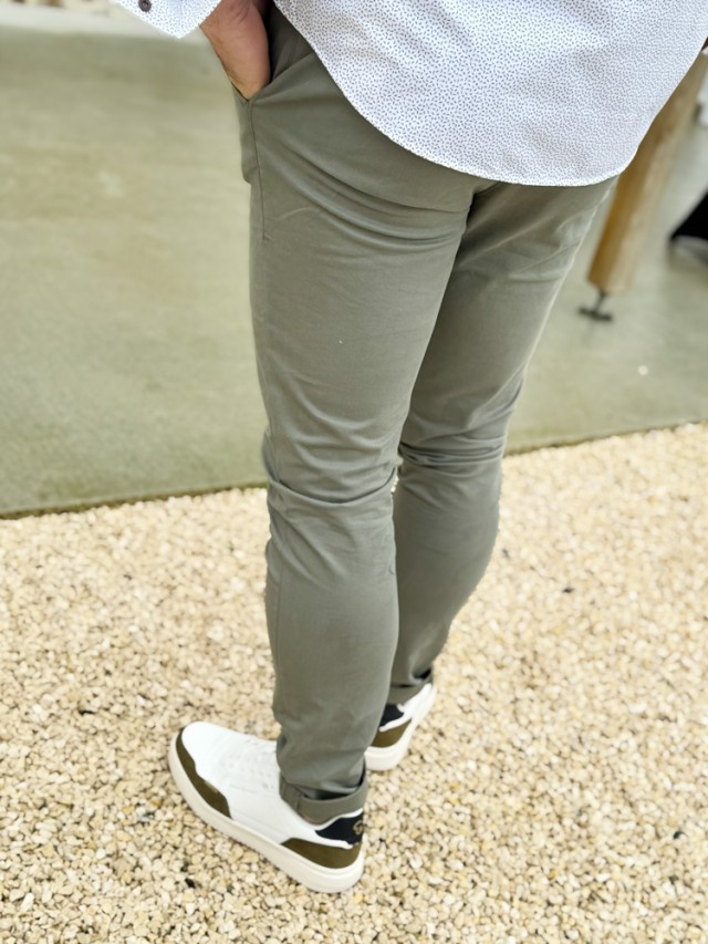 Le chino kaki : l'alternative parfaite au jean pour un look décontracté chic. Avec sa coupe moderne, ce pantalon kaki se porte aussi bien au bureau avec une chemise qu'en week-end avec un t-shirt.