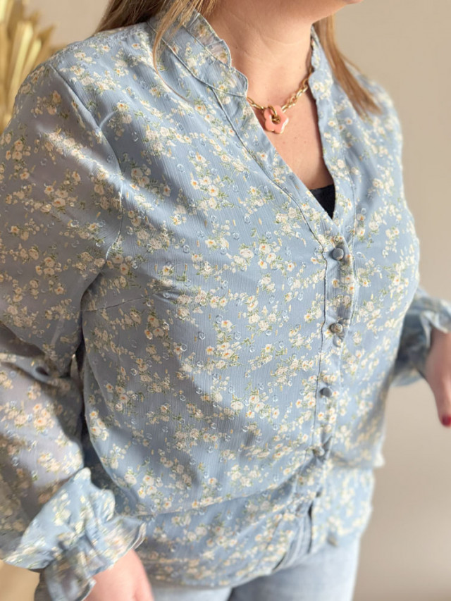 Ajoutez une touche romantique et champêtre à votre tenue avec cette jolie blouse et ses délicates petites fleurs