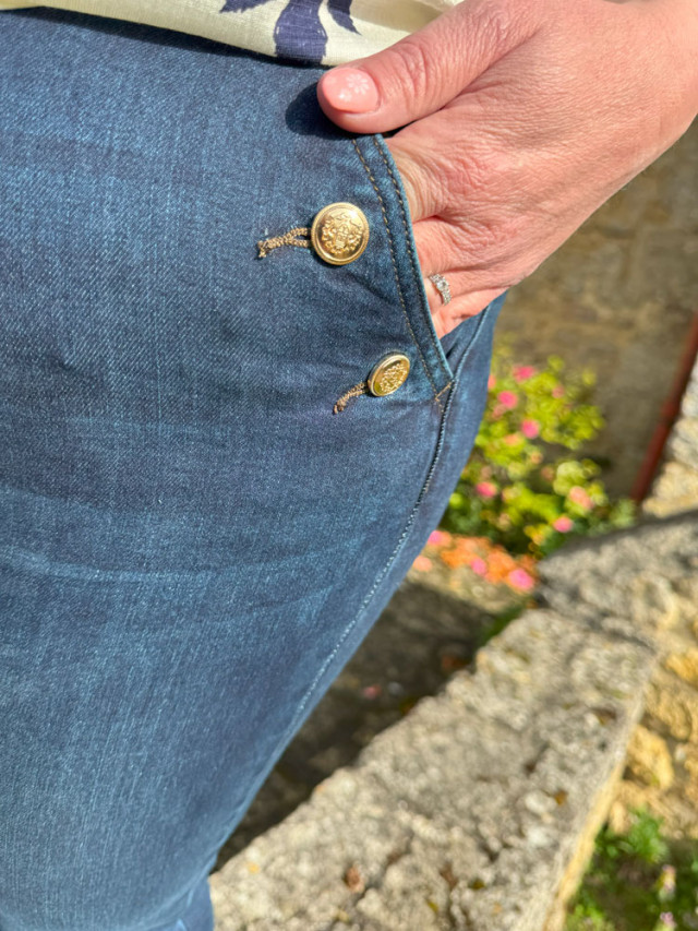 Optez pour cet incontournable jean slim confortable et tendance avec ces boutons officiers qui apporteront une touche d'originalité