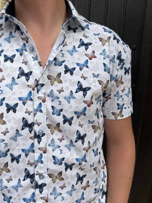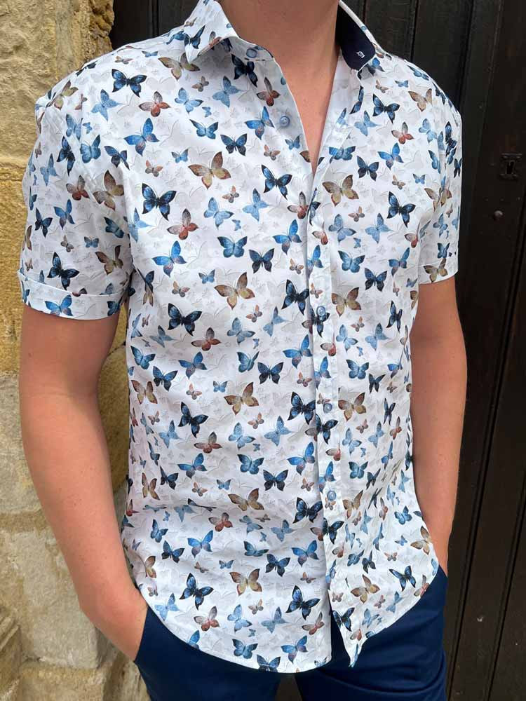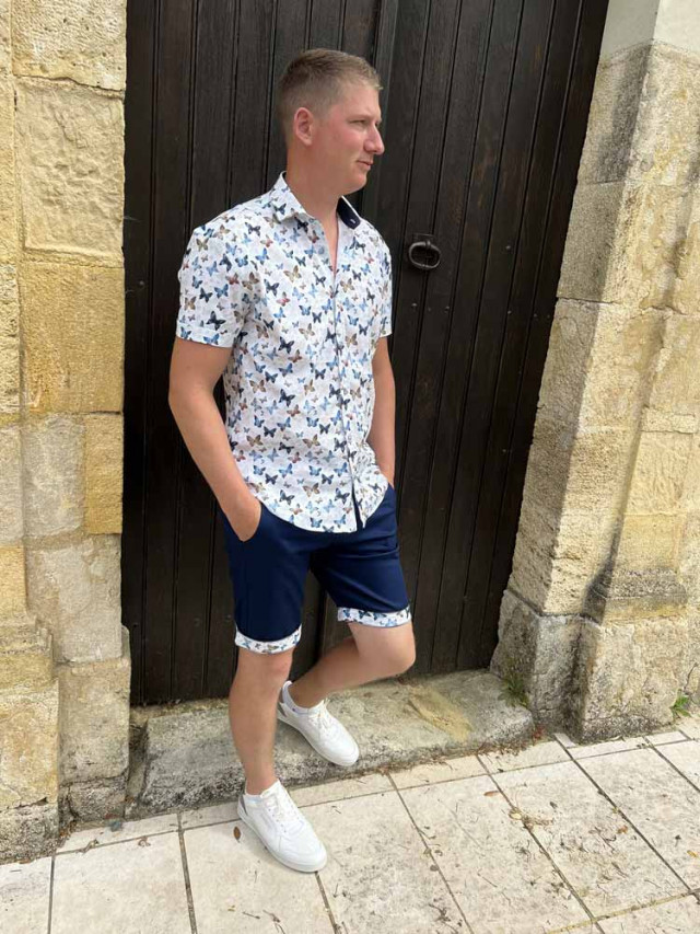 Chic et décontractée, la chemisette blanche papillons Alexandre, sera parfaite avec notre bermuda Nino. Une tenue élégante et tendance.