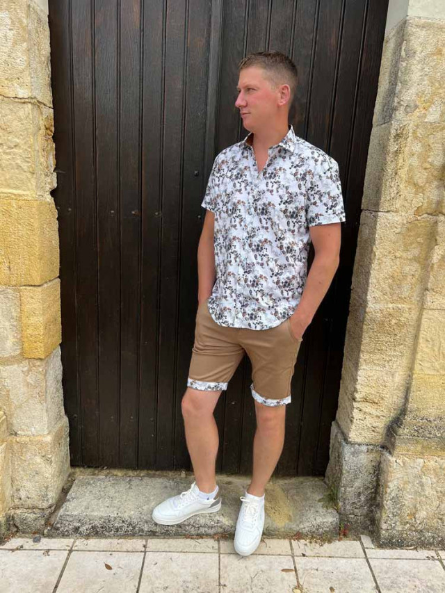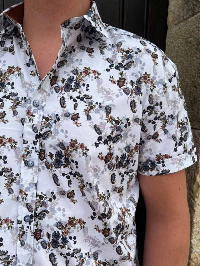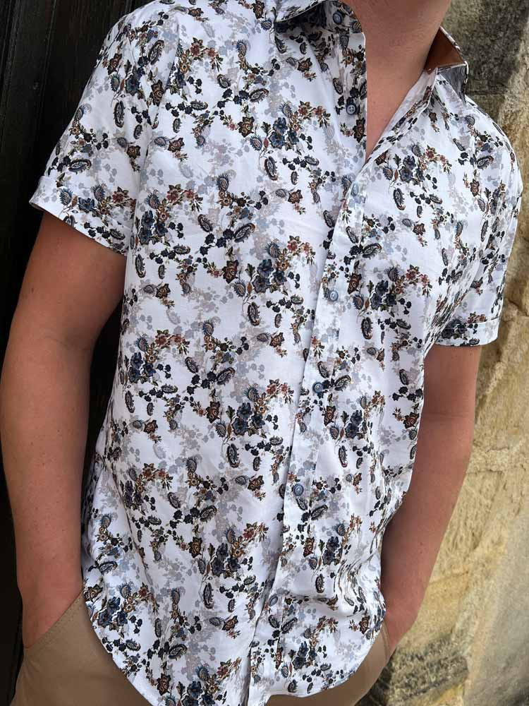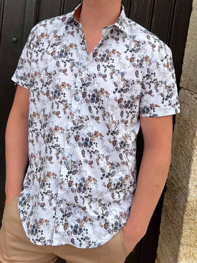 Chic et décontractée, la chemisette blanche à fleurs camel Alexis, sera parfaite avec notre bermuda Nino