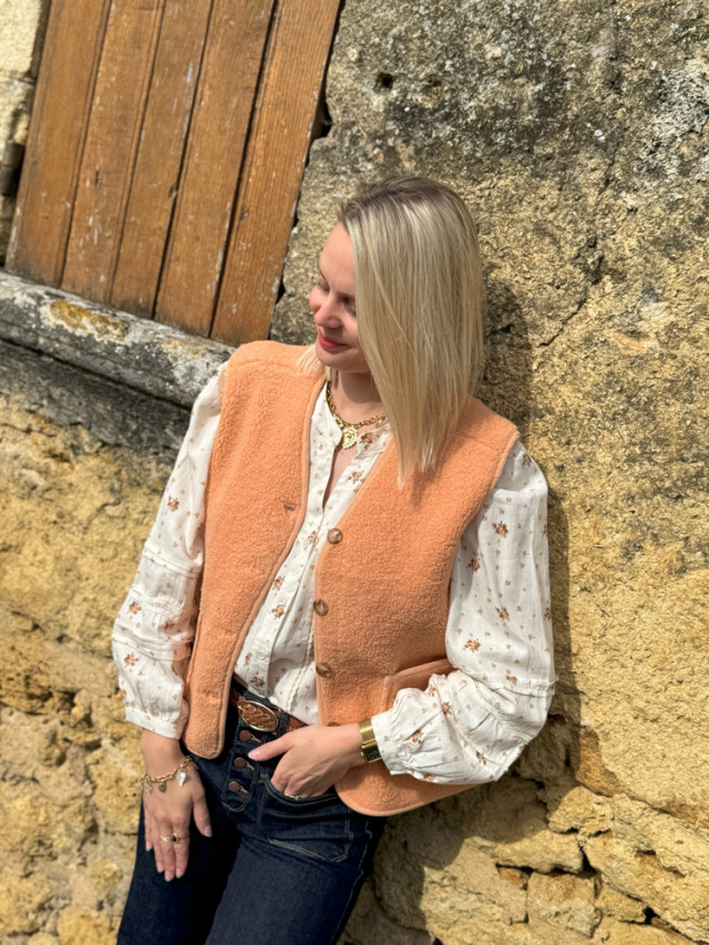 Apportez une touche de douceur à votre tenue avec ce gilet sans manches molletonné, doux et tendance