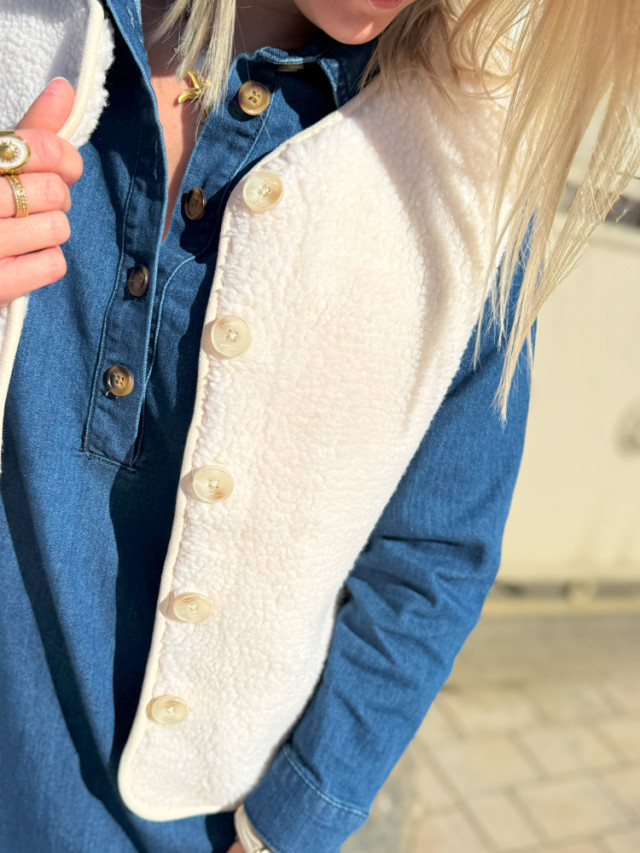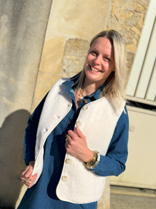 Apportez confort et douceur à votre style avec ce gilet sans manche molletonné, orné d’un délicat cœur brodé dans le dos.
