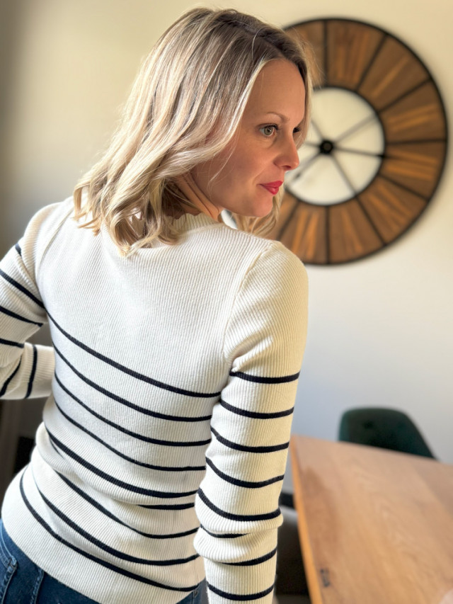 Alliez élégance et confort avec ce pull marinière au style intemporel, revisité avec des petits boutons dorés et une finition nuage délicate.