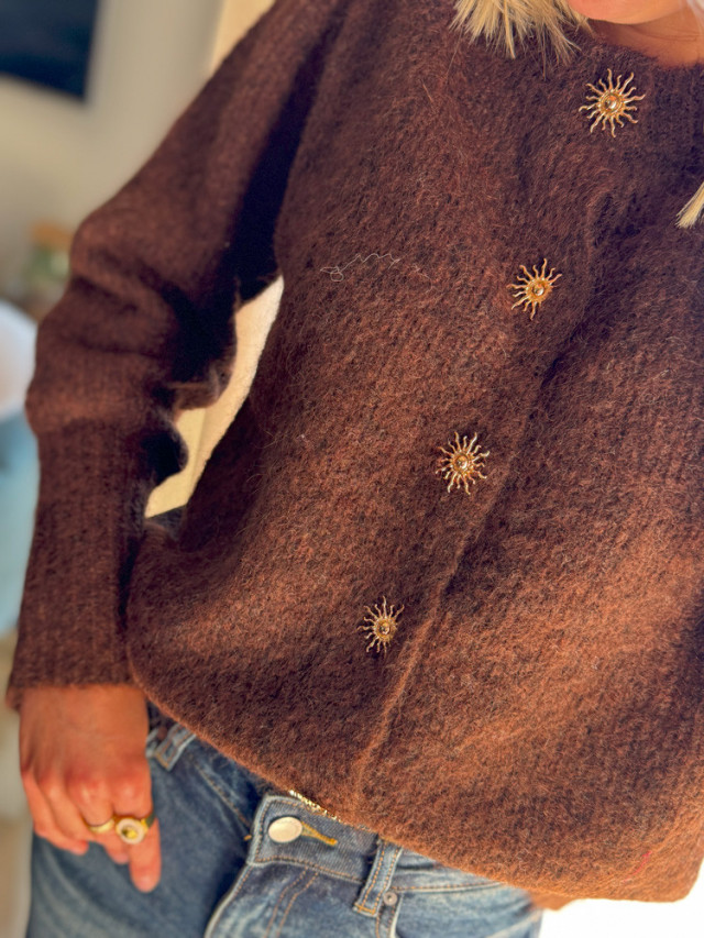 Ajoutez une touche élégante et originale à vos tenues avec ce gilet sublimé par ses boutons soleil décoratifs.