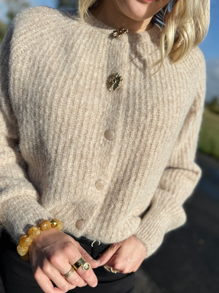 - Boutons fantaisies en haut du gilet et aux manches