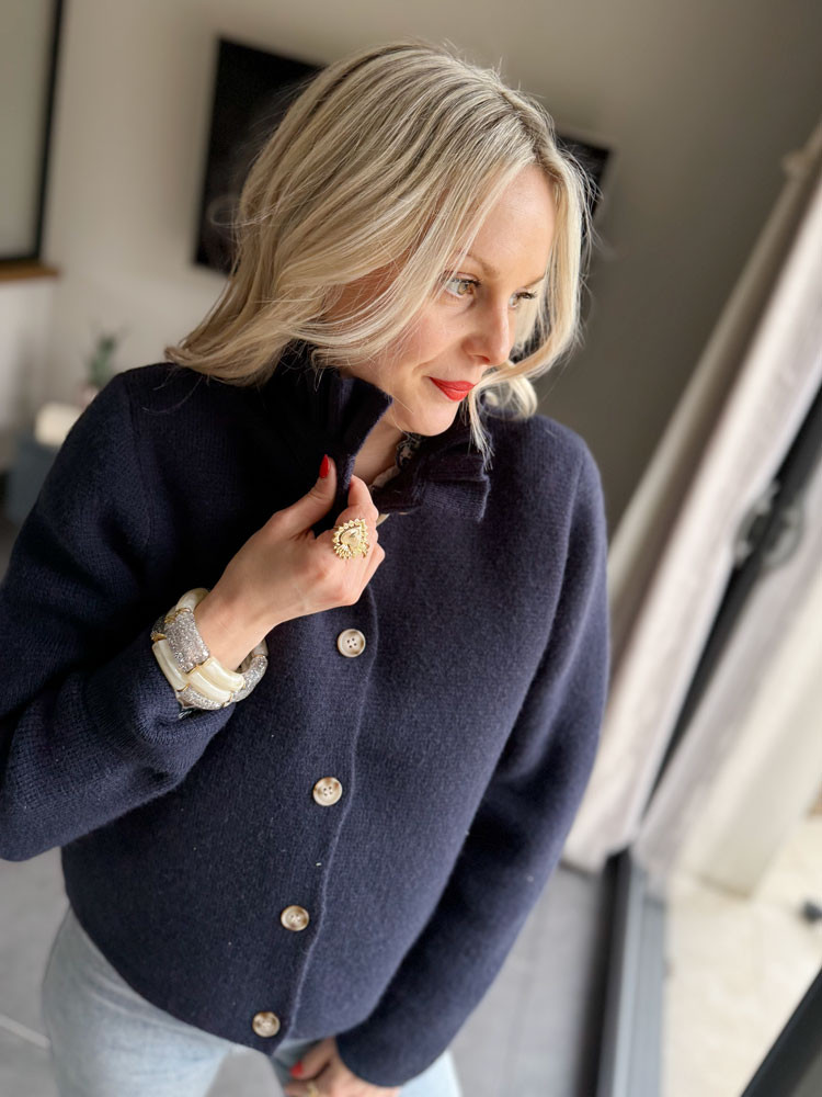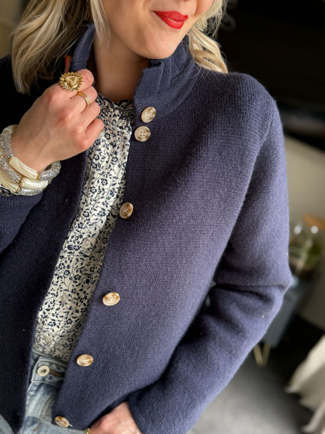 Adoptez une allure élégante et décontractée avec notre gilet à col montant boutonné. Pièce maîtresse de la saison, ce cardigan allie le confort et l'élégance d'un style féminin.