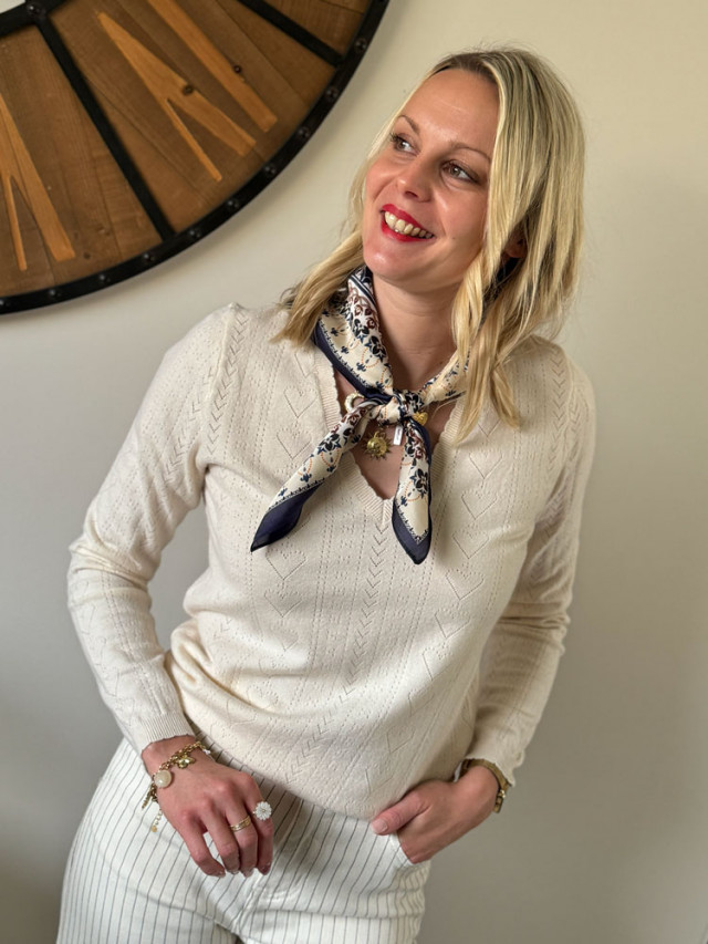 Succombez au charme de ce pull fin pour femme, une pièce délicate qui allie confort et style. Sa maille fantaisie unique apporte une touche de texture et de transparence subtile à vos tenues. Idéal pour la mi-saison ou pour superposer vos looks, ce pull est l'indispensable d'un vestiaire chic et décontracté.