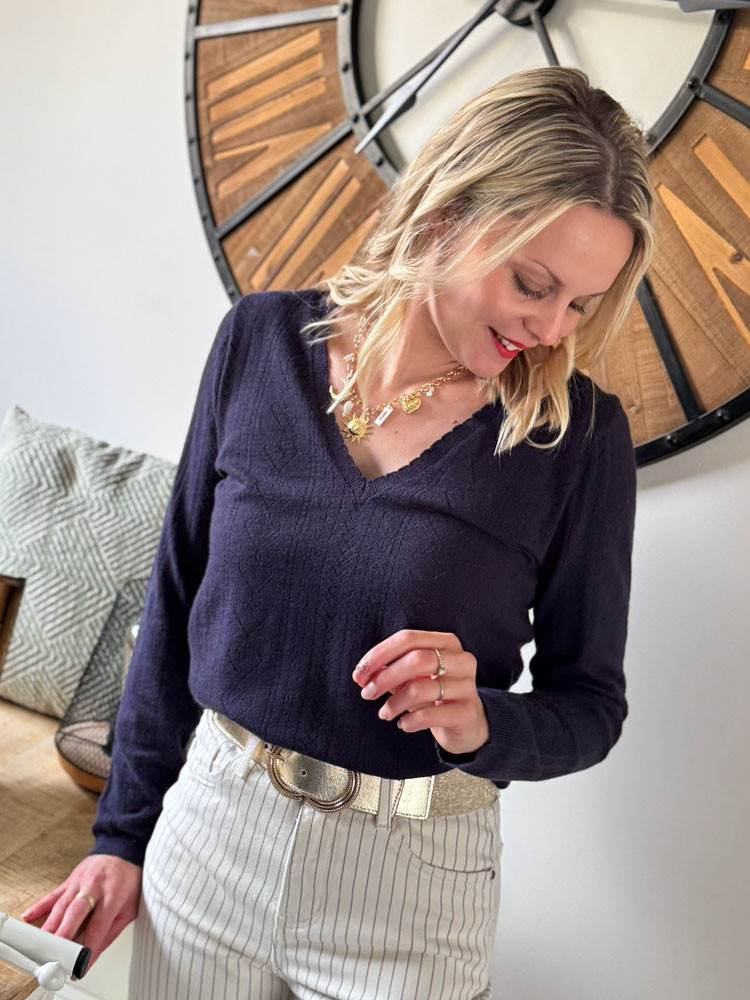 Succombez au charme de ce pull fin pour femme, une pièce délicate qui allie confort et style. Sa maille fantaisie unique apporte une touche de texture et de transparence subtile à vos tenues. Idéal pour la mi-saison ou pour superposer vos looks, ce pull est l'indispensable d'un vestiaire chic et décontracté.