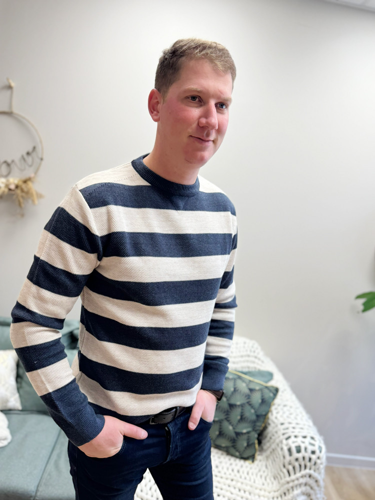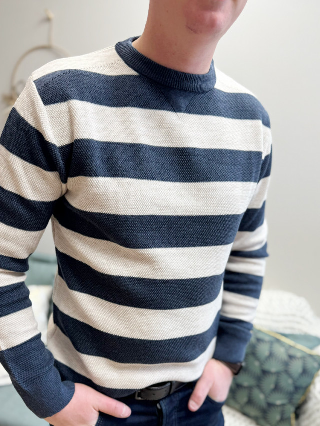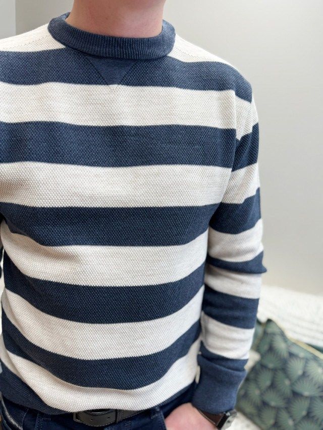 Optez pour un look moderne et décontracté avec ce pull droit rayé deux couleurs pour homme. Sa coupe droite classique assure un confort optimal.