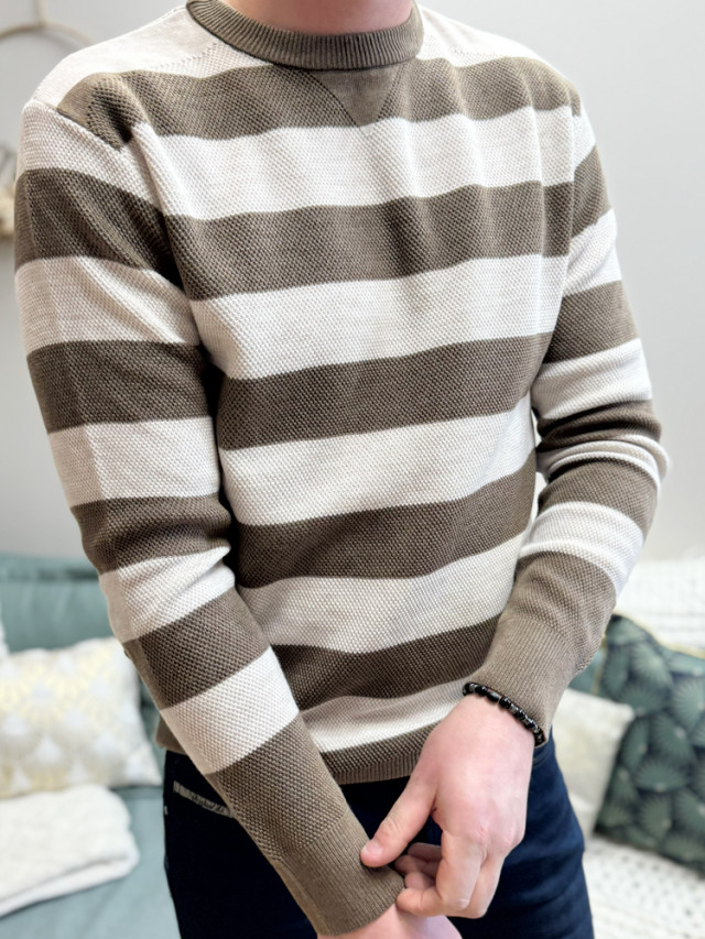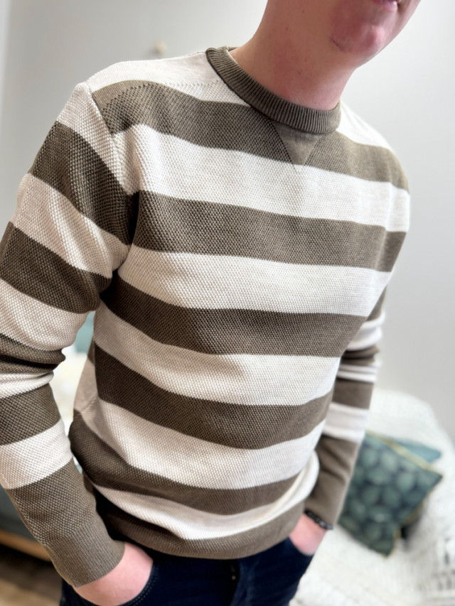 Optez pour un look moderne et décontracté avec ce pull droit rayé deux couleurs pour homme. Sa coupe droite classique assure un confort optimal.