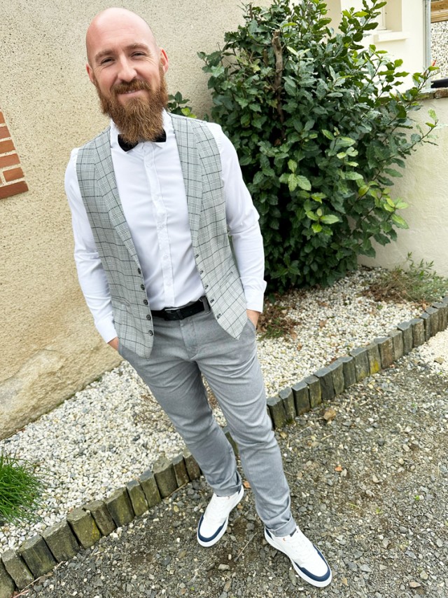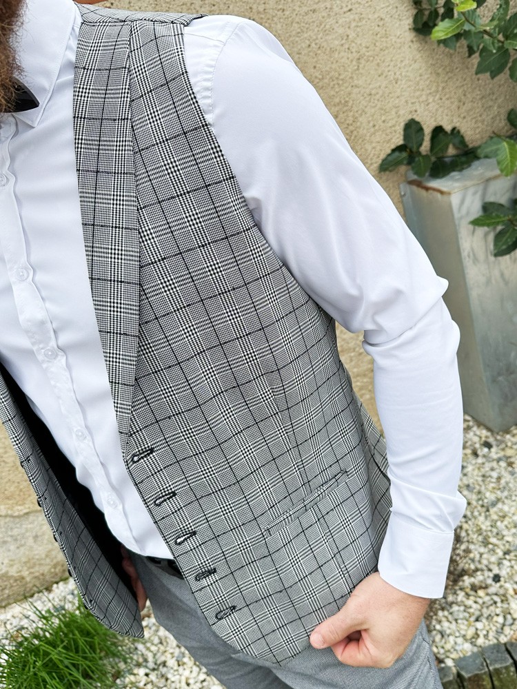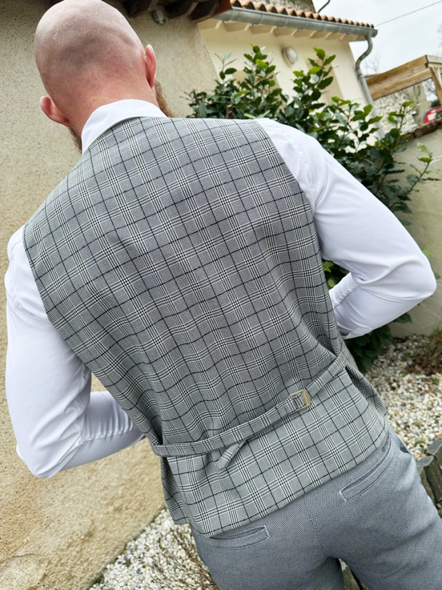 Pièce maitresse d'une tenue de cérémonie, notre boléro gris à carreaux pour homme apporte un atout à votre look.
