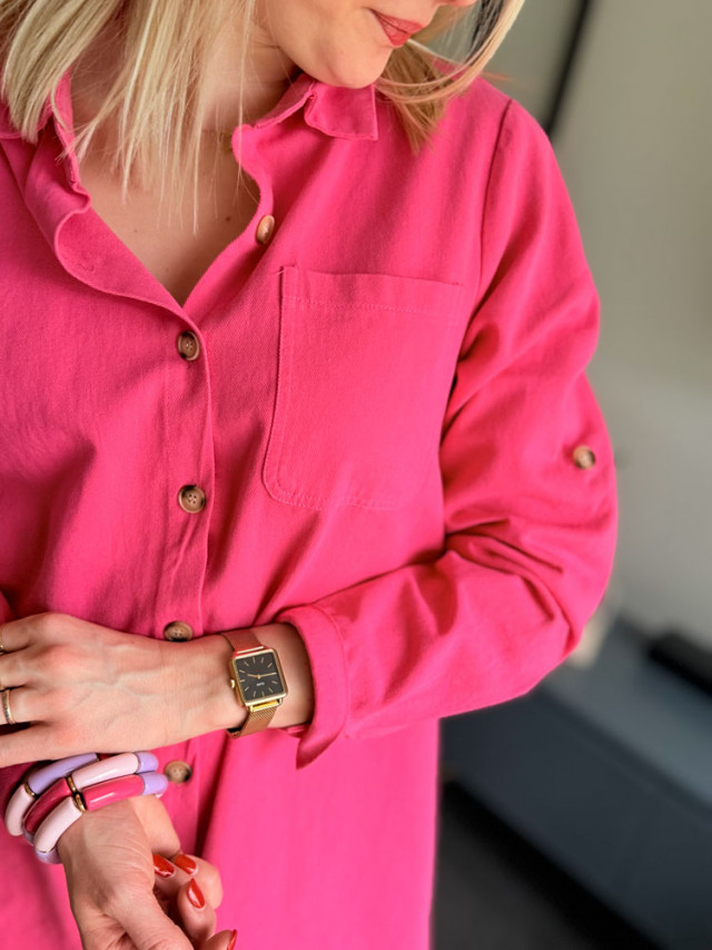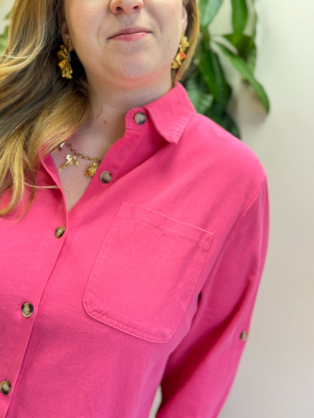 Sortez des sentiers battus avec notre robe courte en jean rose fuchsia. Cette robe est conçue pour celles qui n'ont pas peur de se démarquer.